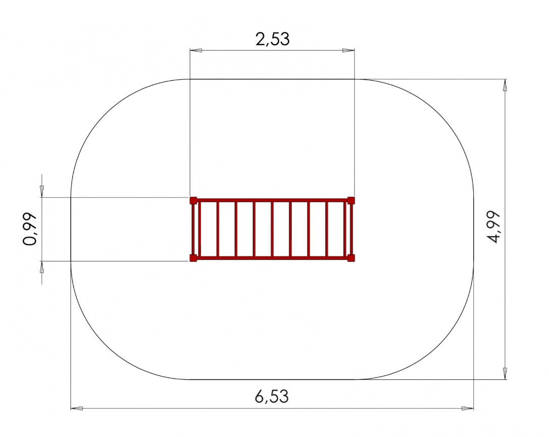 Saugos zonos ilgis 6,53 m