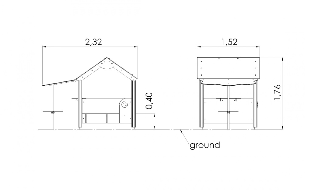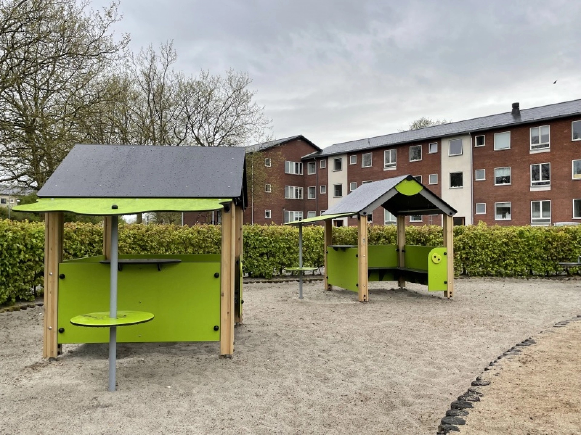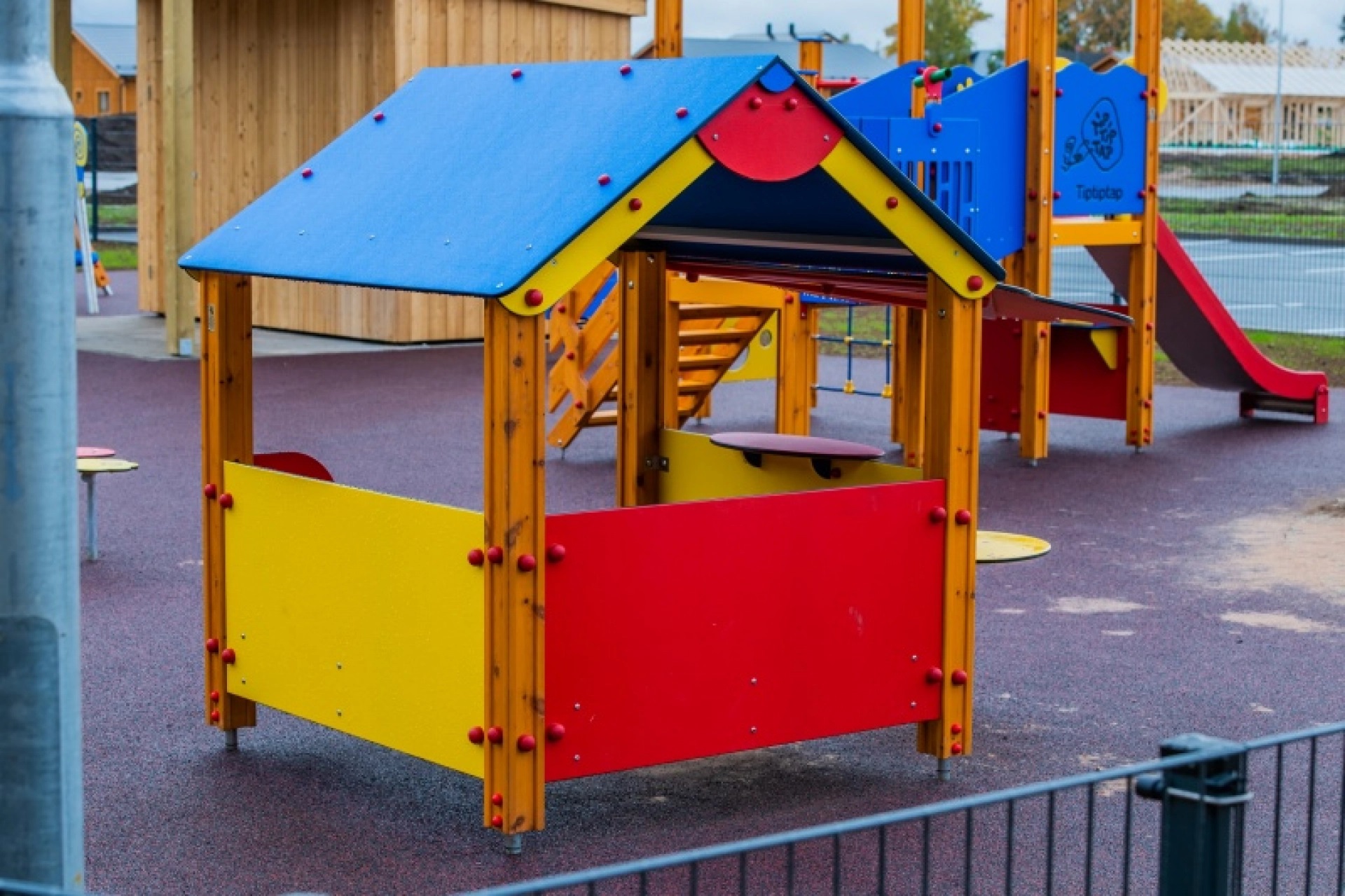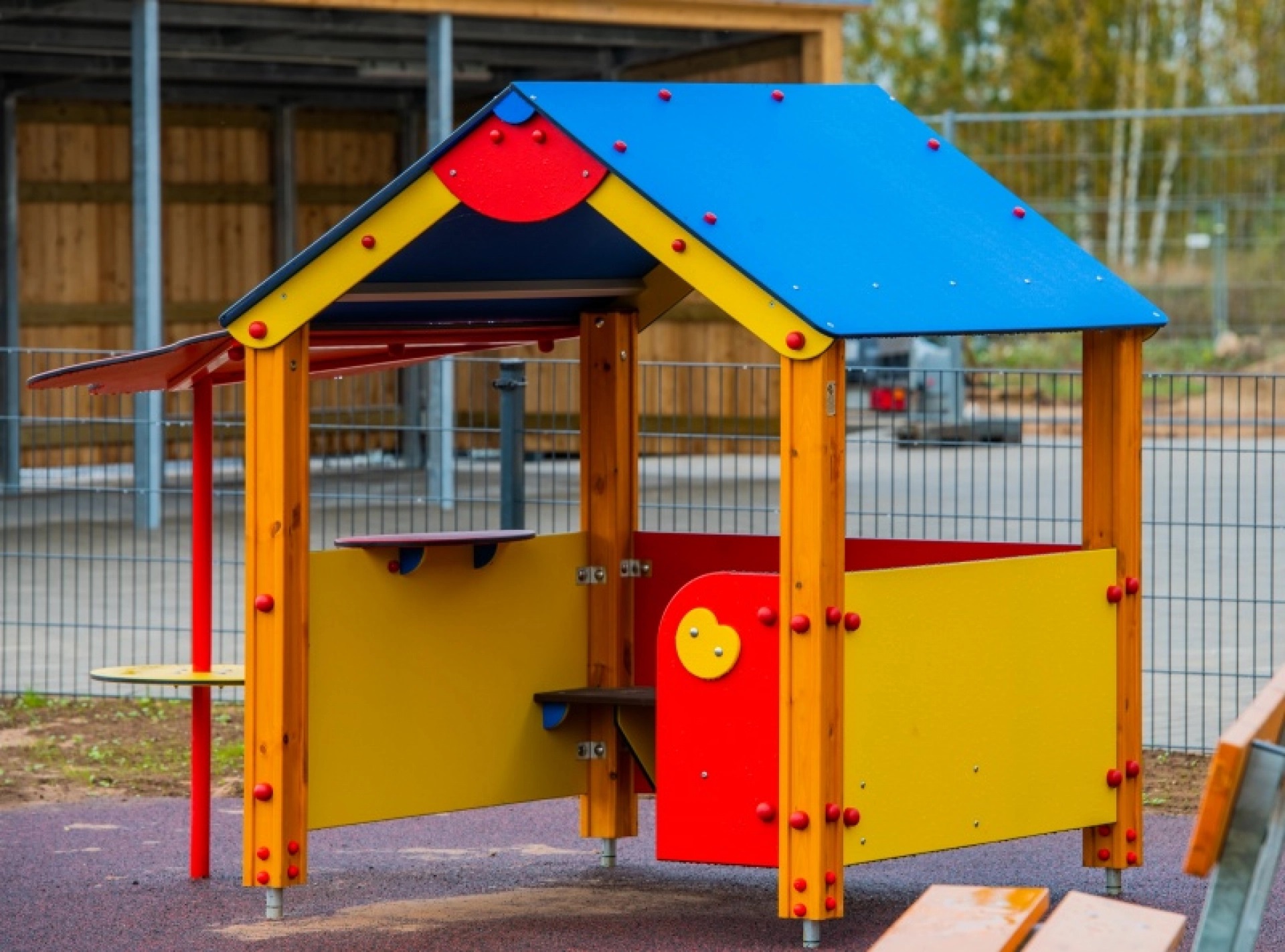 Žaidimų namelis „Obuolys” – tai puikus dengtas namelis, kuriame vaikai gali žaisti daugybę žaidimų ir pasislėpti nuo lietaus ir saulės. Namelio viduje iš dviejų pusių yra suoliukai, ant kurių patogiai gali sėdėti 8-10 vaikų. Trečioje pusėje yra ovalus stalas žaidimams žaisti, o kitoje išorinėje namo pusėje yra graži pastogė su sėdyne.