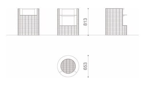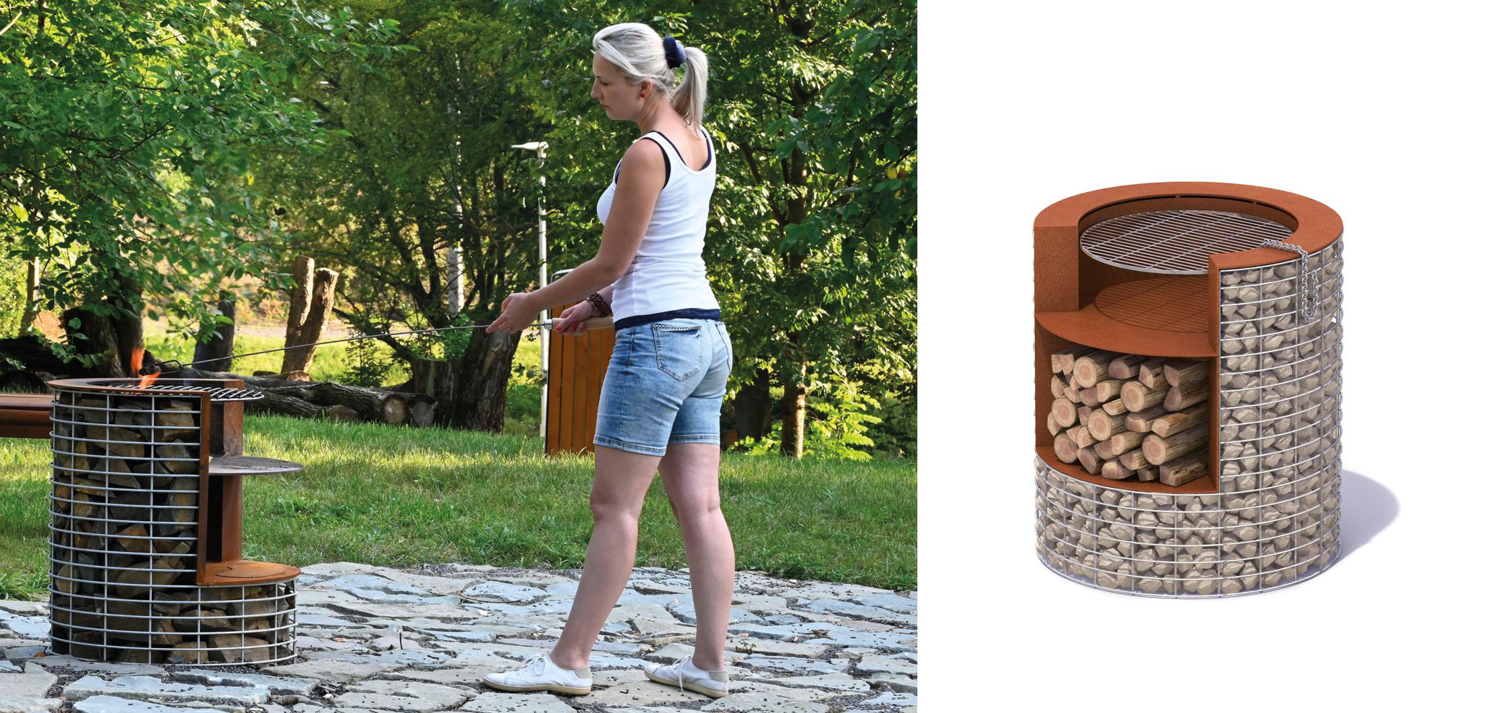 Plieninių kepsninių kolekcija, laikančioji konstrukcija pagaminta iš elektrolitinio suvirinto tinklo su skardos dugnu, su integruota kepsnine iš Corteno plieno lakšto ir nerūdijančio plieno grotelėmis su grandine nuo vagystės. Grilis gali būti su paprasta kepsnine arba su apatiniu skyriumi malkoms laikyti.