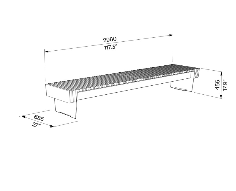 Matmenys: 2980 x 685 x 455h mm. Svoris 155/185kg. Ankeruojamas.
