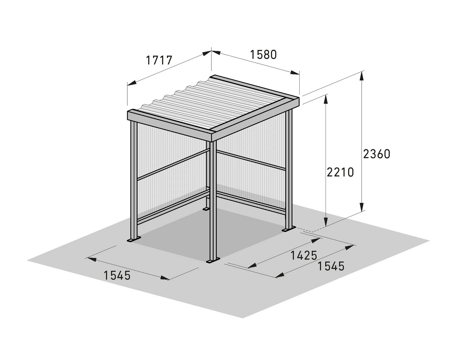 Matmenys 1720 x 1580 x h2360mm.