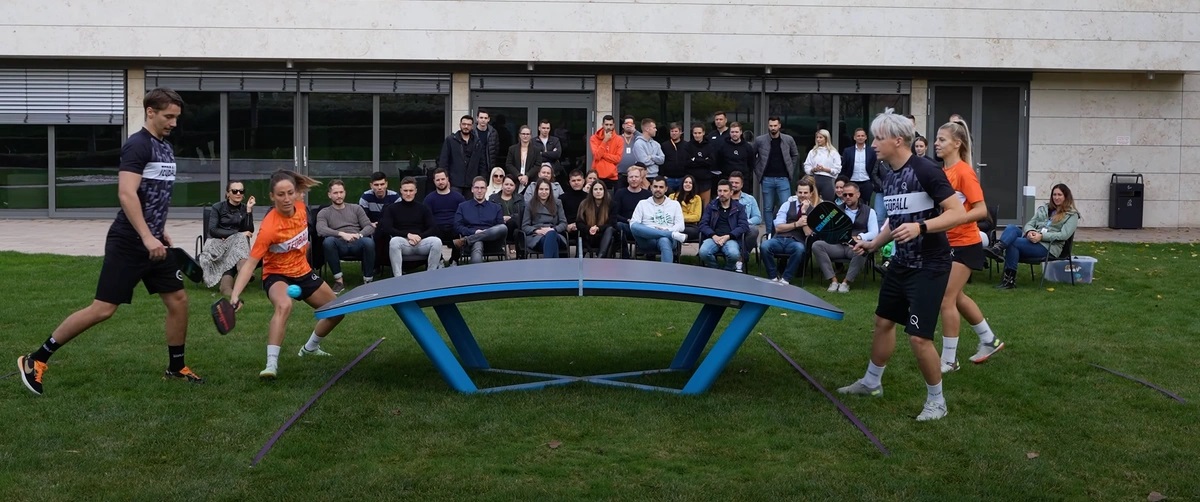 1.Teqball.Tekbolas – tai naujoviška futbolo ir stalo teniso mišinys žaidžiamas ant daugiafunkcinio sporto inventoriaus – TEQ™ stalo.