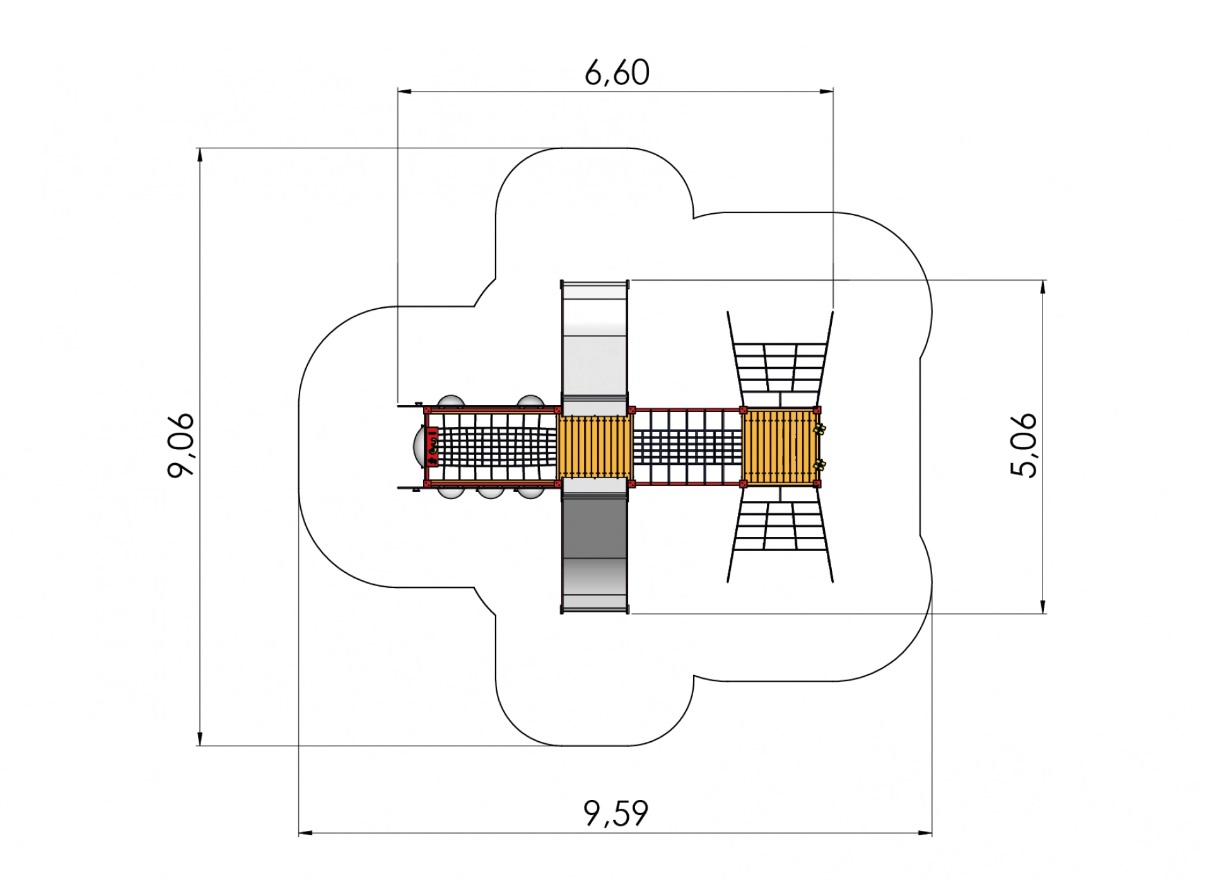 Saugos zonos plotis 9,06 m