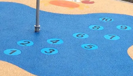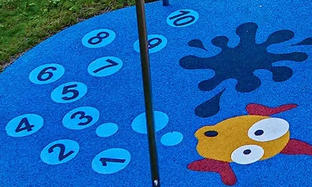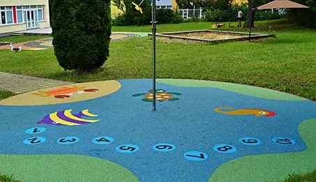 Grafika pagaminta iš spalvotų EPDM granulių, kurios atitinka EN 71 standartą.